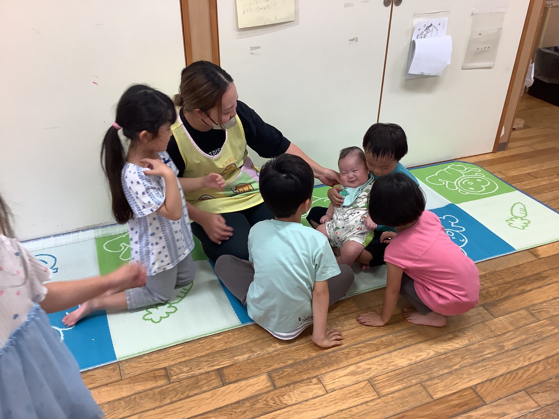 ミルクやオムツ、おしりふき、エプロン、帽子、寝具等はすべて園の物を使用します。持ち物は着替えのみです!